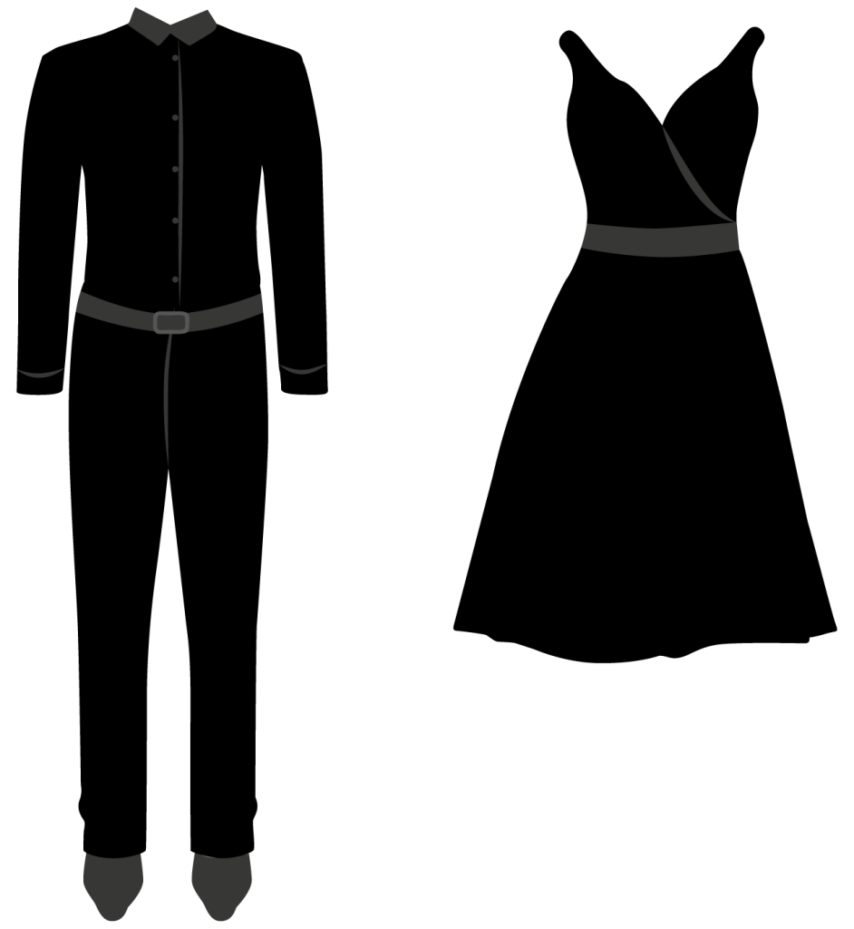 Hombre: Camisa y pantalón en color negro y/o blanco.
